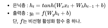 이때 ℎ를 계산하기 위한 활성화 함수로는 주로 하이퍼볼릭탄젠트 함수(tanh)가 사용된다.
