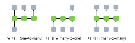RNN은 입력과 출력의 길이를 다르게 설계 할 수 있으므로 다양한 용도로 사용할 수 있다.