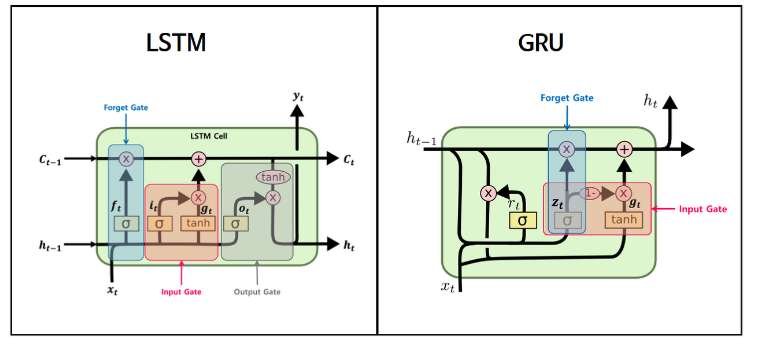 GRU는 LSTM의 장기 의존성 문제에 대한 해결책을 유지하면서도, 은닉 상태를 업데이트 하는 계산을 줄였다.