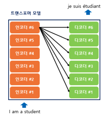 위의 그림은 인코더와 디코더가 6개씩 존재하는 트랜스포머의 구조이다.