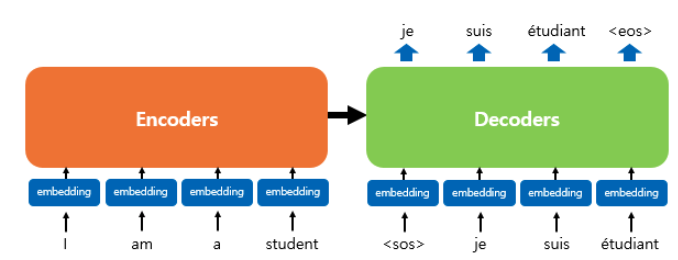 기존의 seq2seq 모델은 인코더-디코더 구조로 이루어져 있는데, 입력 시퀀스를 하나의 벡터 표현으로 압축하고 디코더는 이 벡터를 통해서 출력 시퀀스를 만들어 낸다.